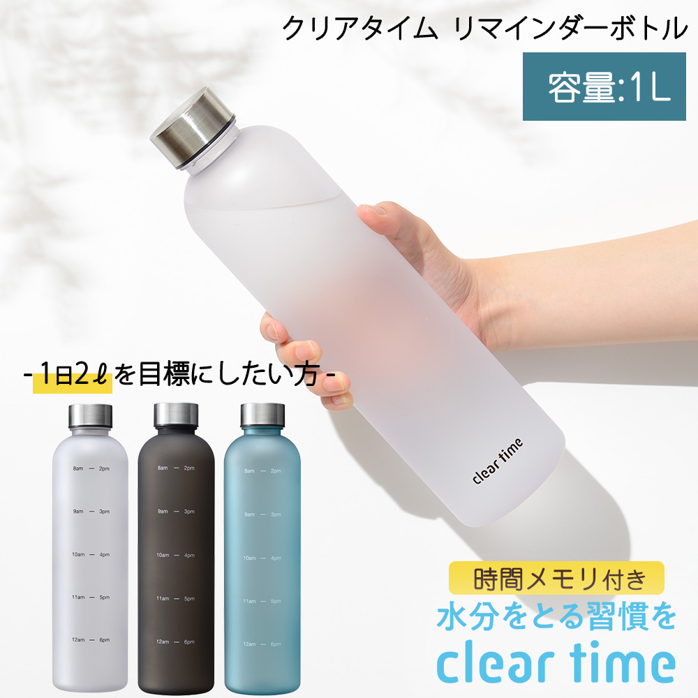 水筒 ウォーターボトル 1L 1000ml ボトル リマインダークリアボトル モチベーションボトル シンプル おしゃれ 時間メモリ付き タイムマーカー 目盛り 水 軽量