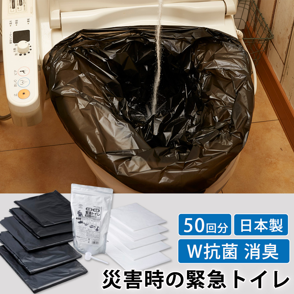 防災トイレ 簡易トイレ 緊急トイレ 携帯トイレ 50回分 防災 備蓄 断水防災備蓄 地震 台風 災害 断水 凝固剤 汚物袋 処理袋 消臭 抗菌 介護 避難 車 渋滞
