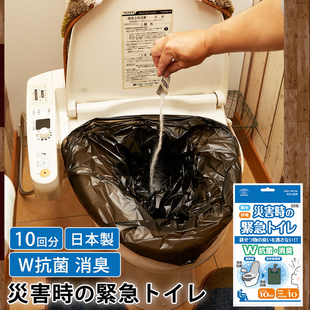 防災トイレ 簡易トイレ 緊急トイレ 携帯トイレ 10回分 防災 備蓄 断水防災備蓄 地震 台風 災害 断水 凝固剤 汚物袋 処理袋 消臭 抗菌 介護 避難 車 渋滞