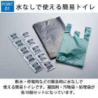 断水・停電時などの緊急時に水なしで使える簡易トイレ10回分。