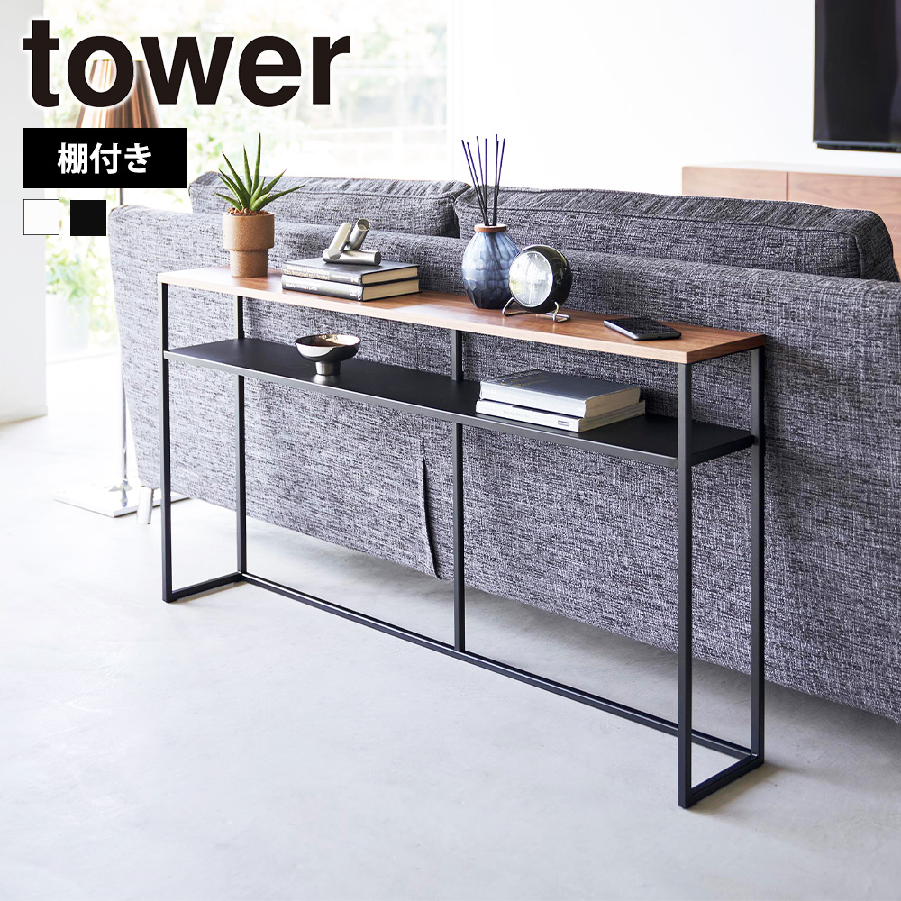 山崎実業 tower ソファー裏コンソールテーブル タワー 棚付き スリム ワイド 背面 ラック シェルフ オープンラック 玄関 廊下 リビング 台 木製 スチール