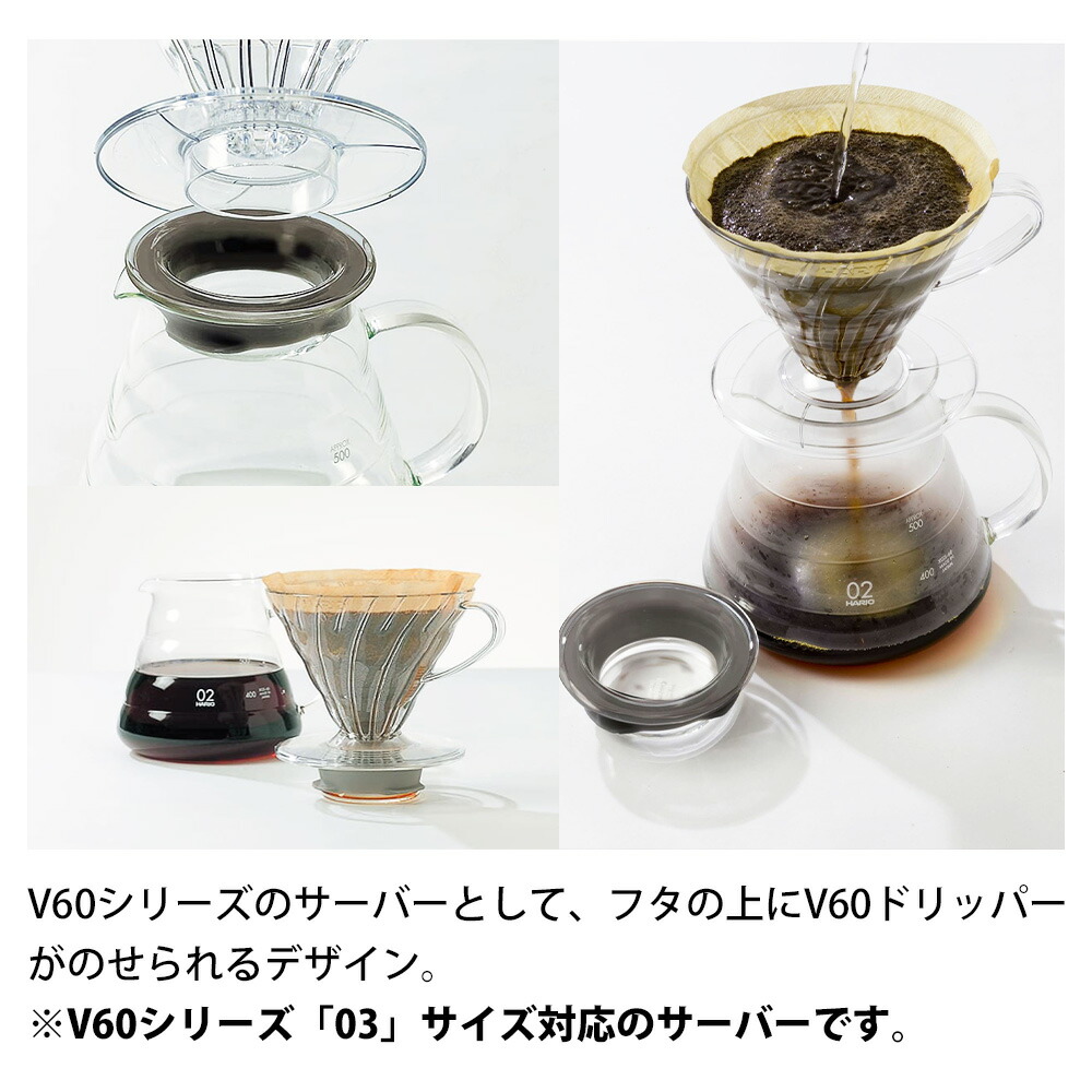 ・V60シリーズのサーバーとして、フタの上にV60ドリッパー(VD-01、02、03)がのせられるデザイン。