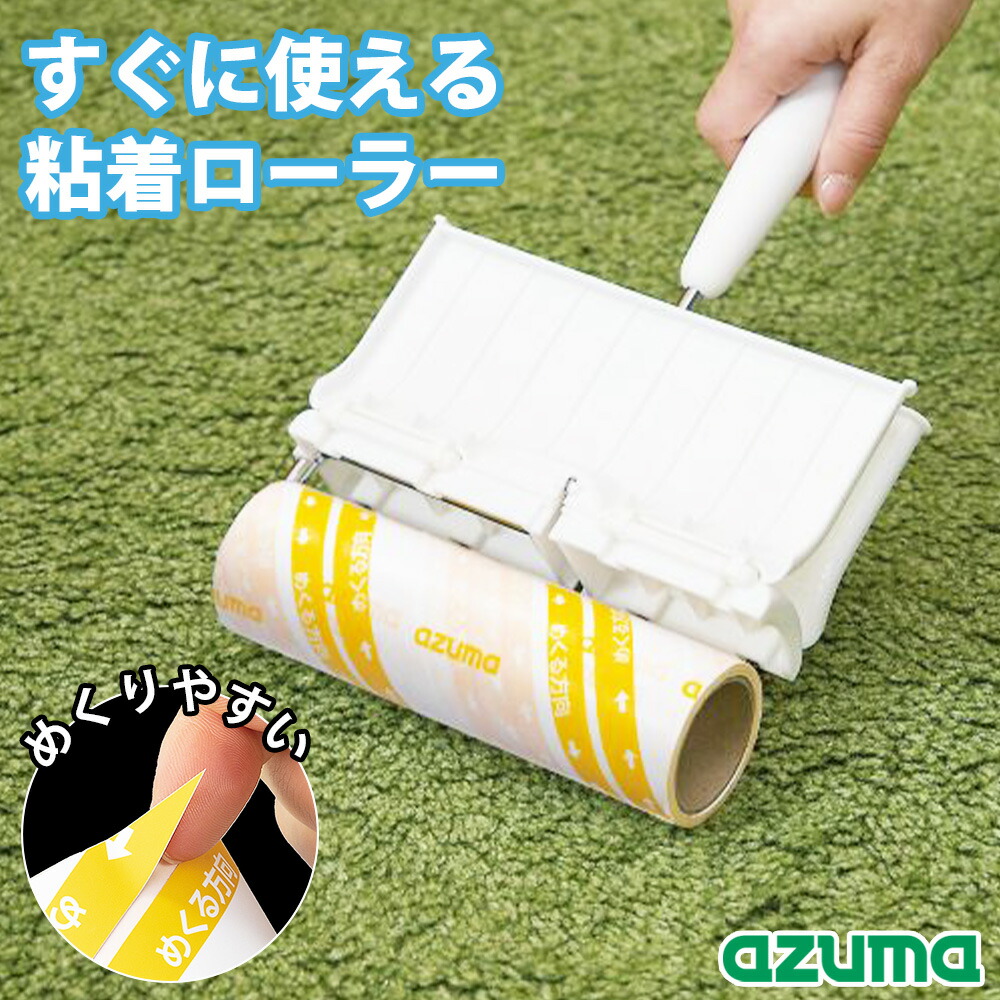 粘着クリーナー らくるんすぐに使える粘着ローラー ハンディ カバー一体型 カーペットクリーナー ホコリ取り 粘着テープ 床掃除 斜め ほこり取り アズマ工業