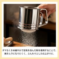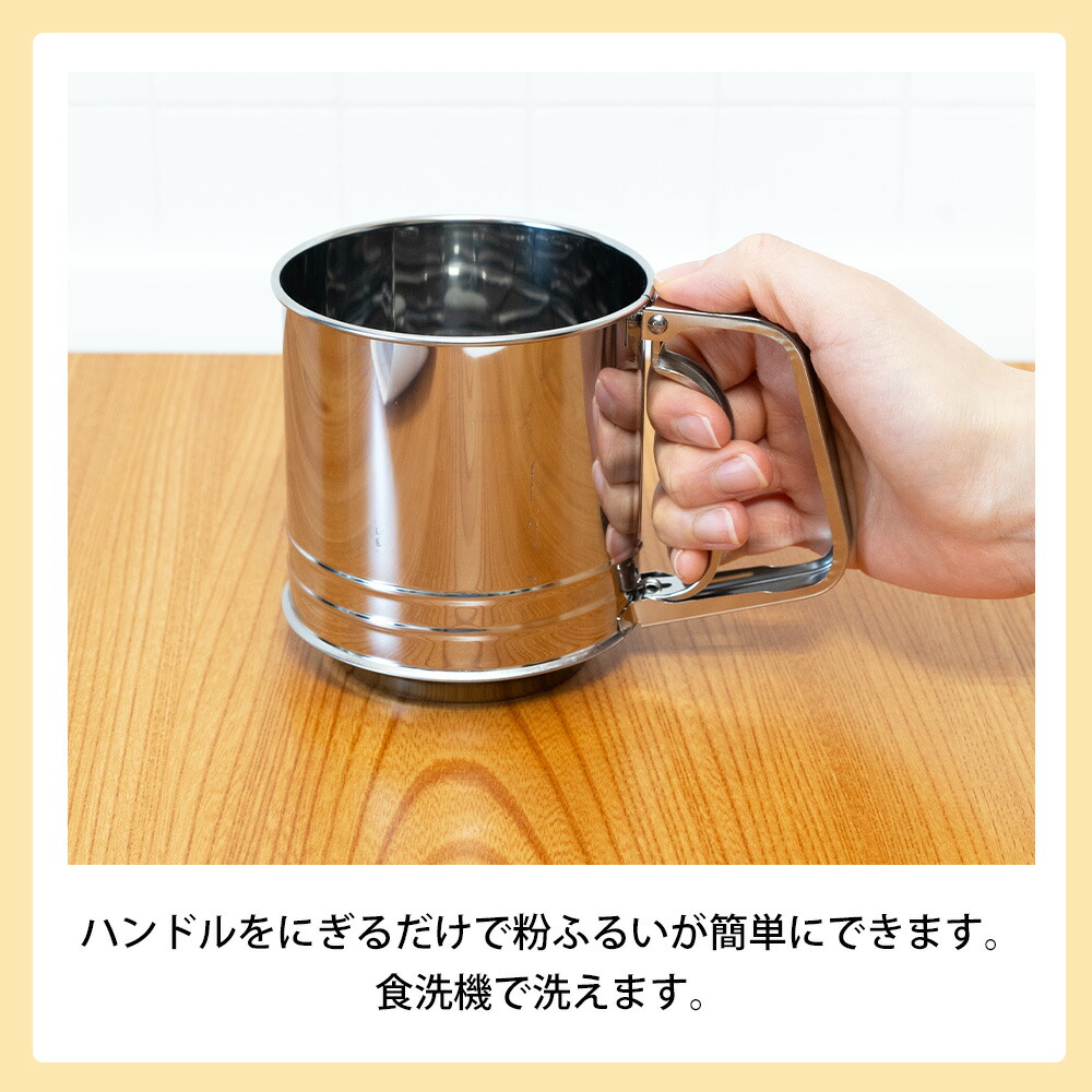 ハンドルをにぎるだけで粉ふるいが簡単にできます。
