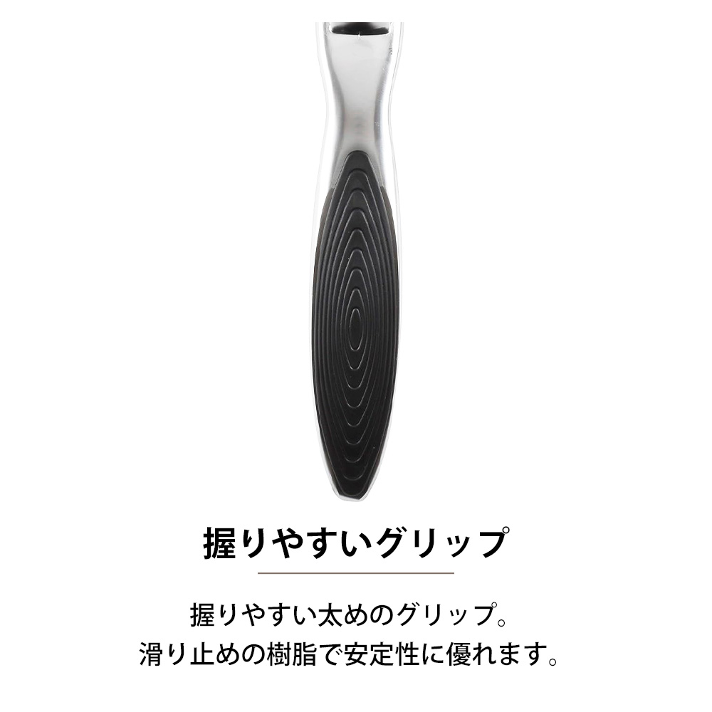 握りやすい太めのグリップ。滑り止めの樹脂で安定性に優れます。