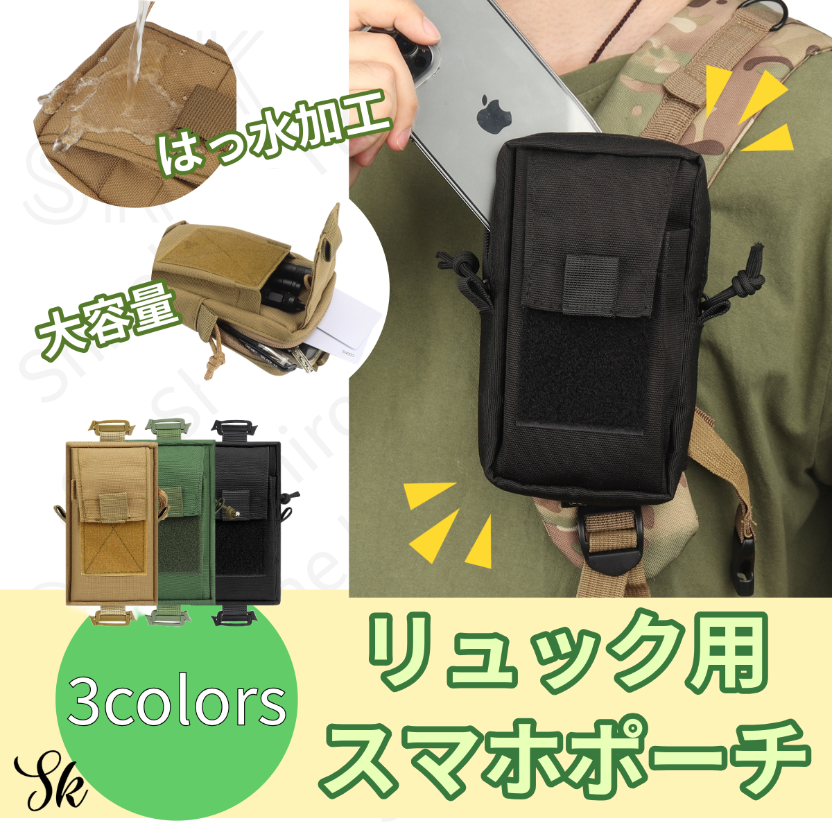 スマホポーチ リュック アウトドア キャンプ カラビナ 簡単装着 撥水 軽量 大容量 財布 登山 釣り 旅行 小物入れ ザック メンズ ポシェット