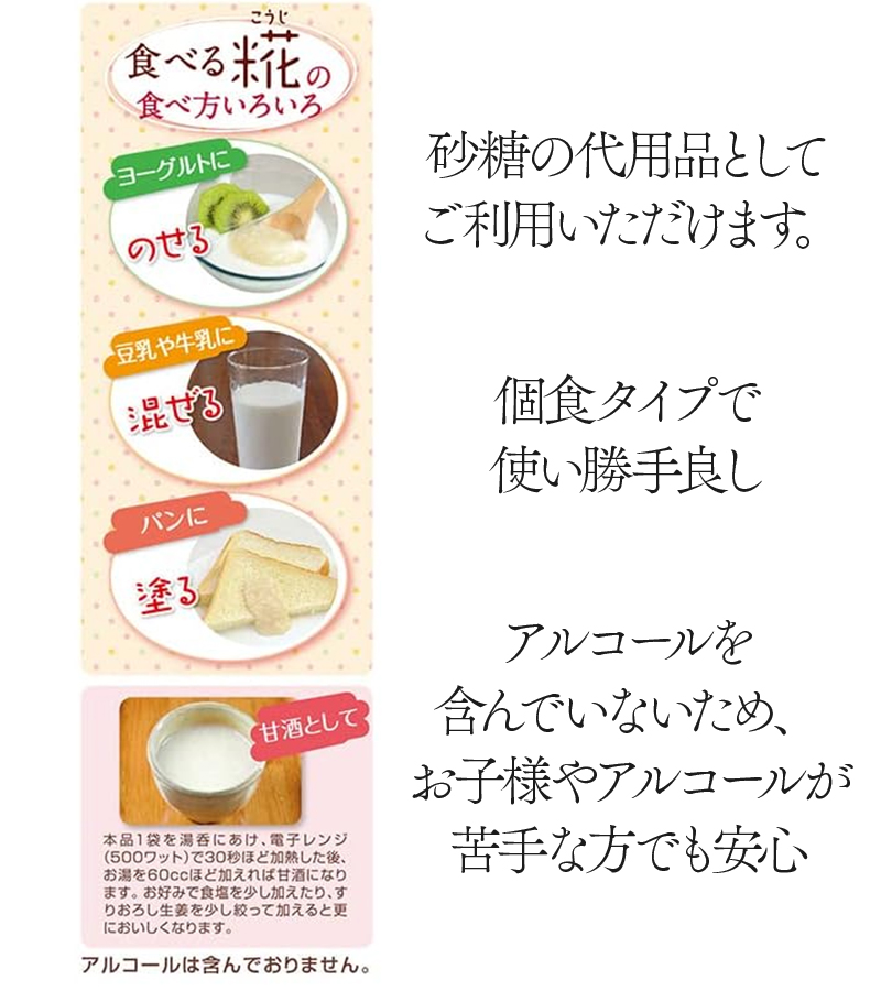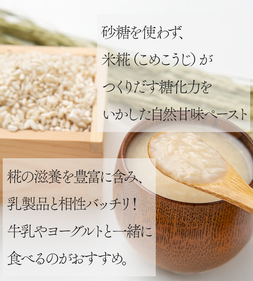 | 原材料名 | 米糀(自社製)、米(米国)、食塩(日本)、酸化防止剤(ビタミンC) |