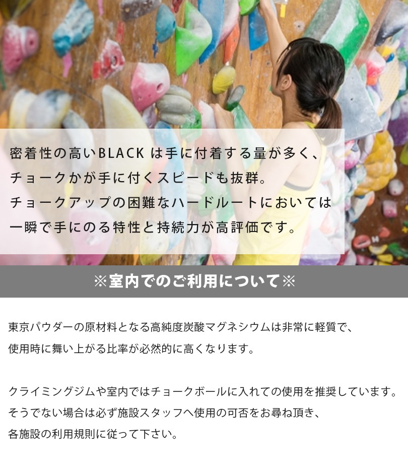 長期の研究の末、遂に完成を遂げたクライミング用チョークPURE BLACKです。