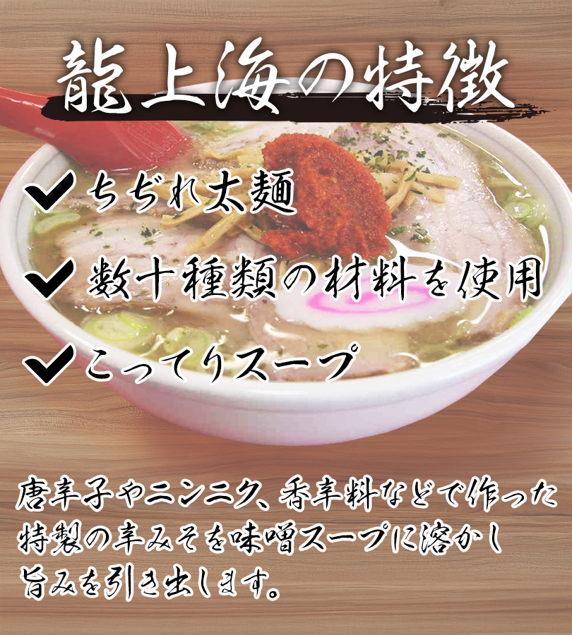 | 商品名 | 赤湯からみそラーメン 龍上海 |