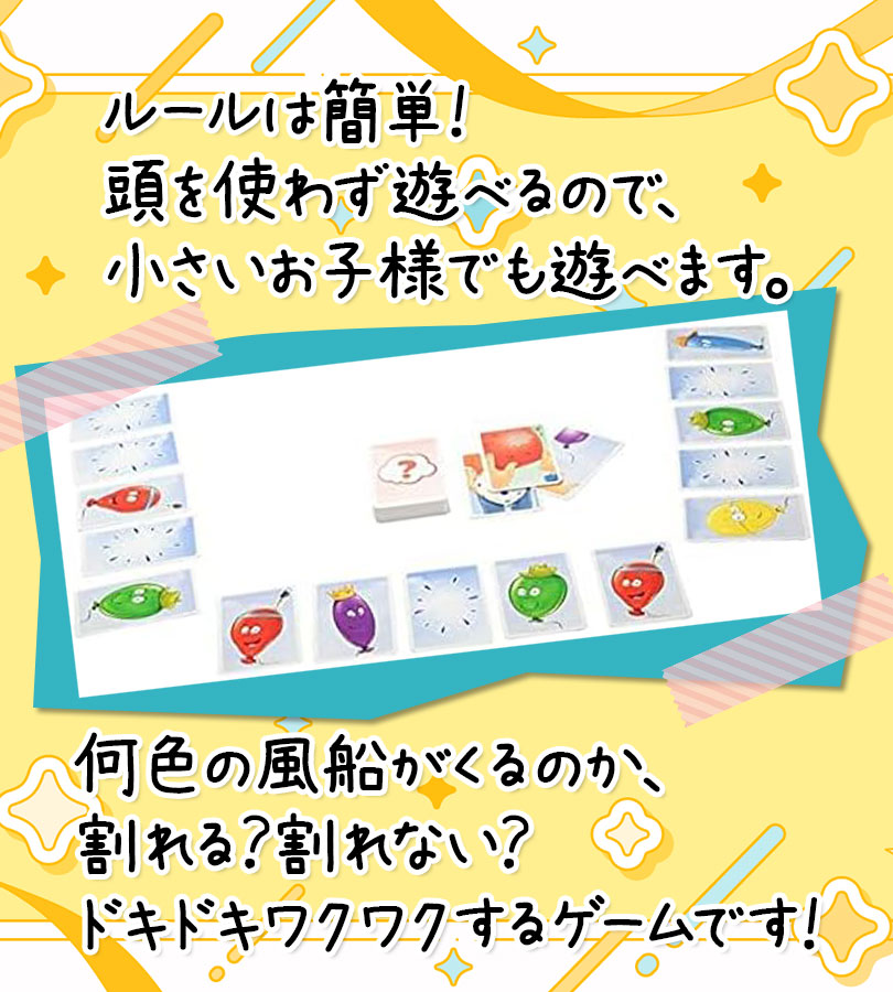 風船カードを5枚ずつ配り、各自の前に並べます。