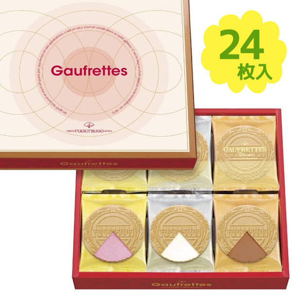 | 内容量 | ゴーフレット24枚 (バニラ8枚、ストロベリー8枚、チョコ8枚) |