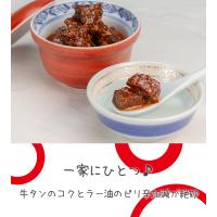 | 原材料名 | 牛タン(カナダ、アメリカ、その他) 食用調合油 (食用なたね油、食用大豆油)、砂糖、醤油、食用ごま油 オイスターソース、味噌、フライドガーリッ ク、フライドオニオン 香辛料、干し椎茸、 胡麻、 唐辛子、さとうきび抽出物/調味料 (アミノ酸) トウガラシ色素、カラメル色素、(一部に小麦・牛肉・ごま・大豆を含む) |