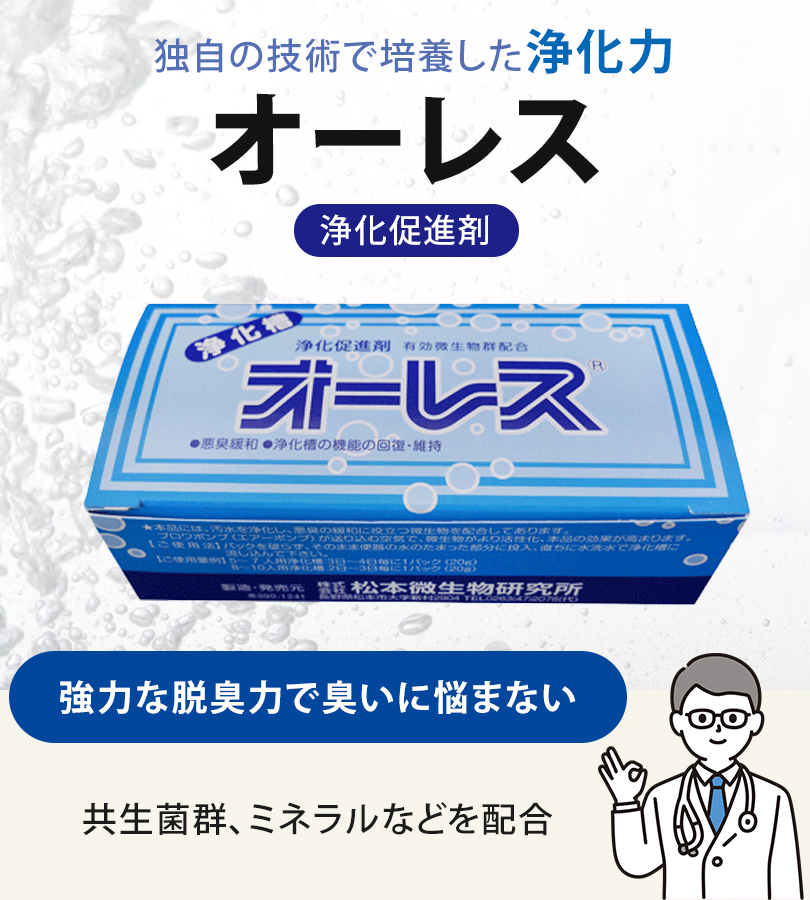 浄化槽の機能の回復、維持・浄化促進、汲み取りトイレ、排水口等の悪臭緩和に!