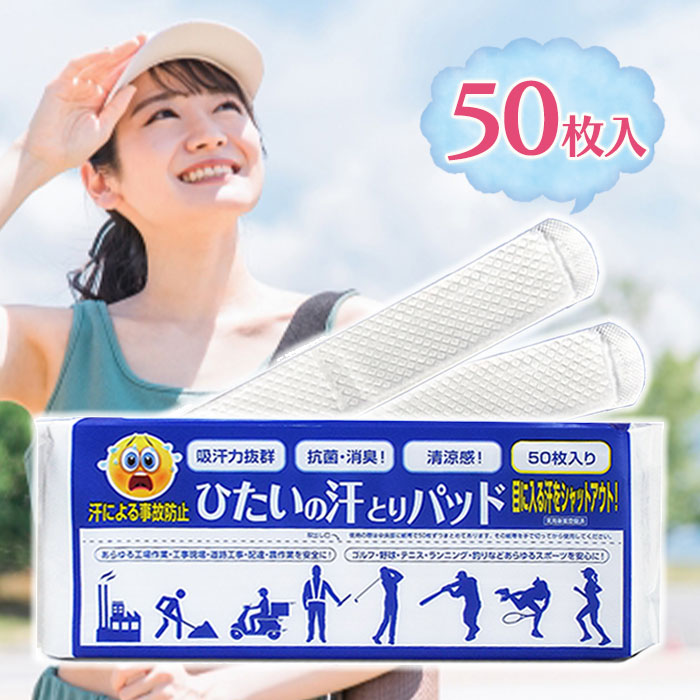 汗取りパット ひたいの汗取りパット 50枚入 吸収力 抗菌 消臭 メントール配合 ワイドサイズ 清涼感 スポーツ ゴルフ ランニング 登山 工事現場 工場作業 農作業