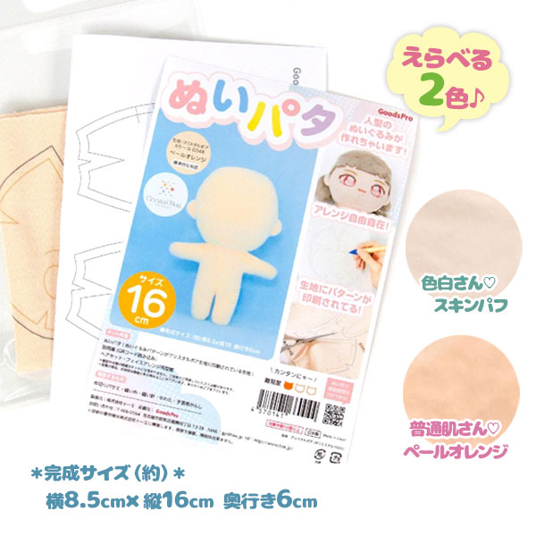 ぬいぐるみ 手作り キット ぬいパタ 16cm 手芸 裁縫 刺繍 顔 推し キャラクター オリジナル 人形 簡単 アレンジ ペールオレンジ スキンパフ