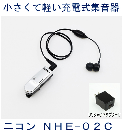 ニコン充電式集音器 NHE-02C 小型で軽量 扱いやすい 充電コード USB AC電源アダプター付き 軽度難聴の方向け プレゼントにも好適 ギフト