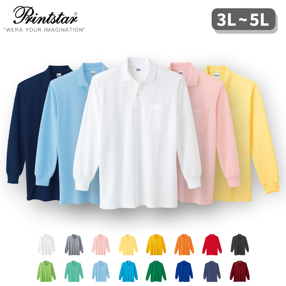 ポロシャツ 長袖 大きいサイズ メンズ レディース 無地 ポケット付き プリントスター(Printstar) 5.8オンス 00169
