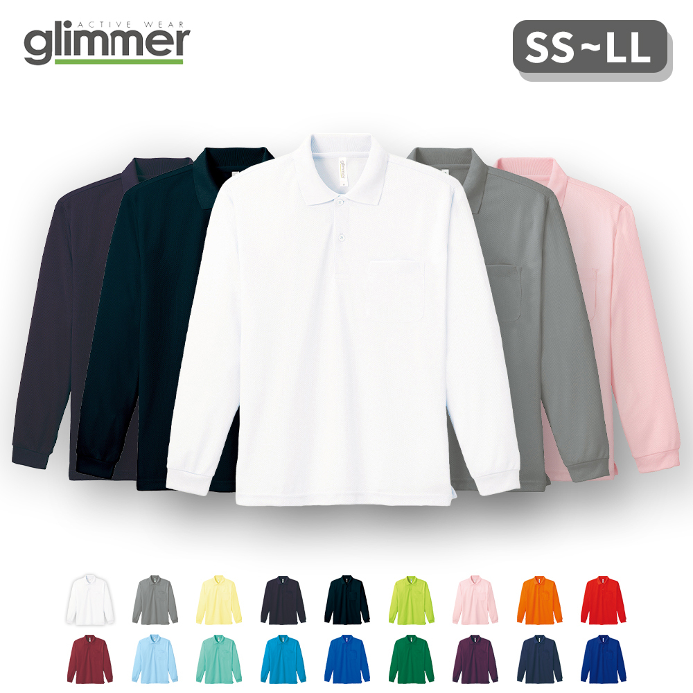 ポロシャツ 長袖 メンズ レディース 大きいサイズ 無地 ドライ 吸汗 速乾 ブランド ポケット カジュアル グリマー(glimmer) 4.4オンス 00335-ALP 335alp