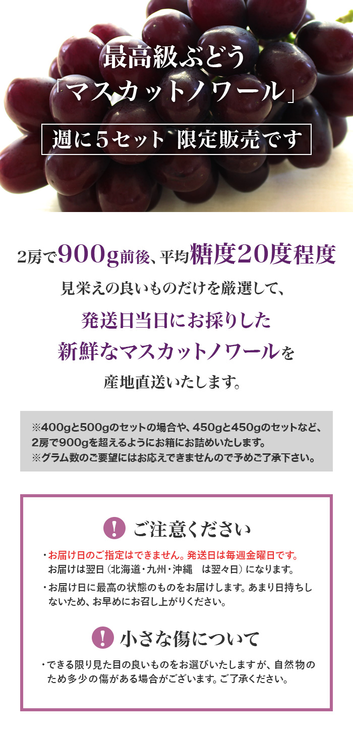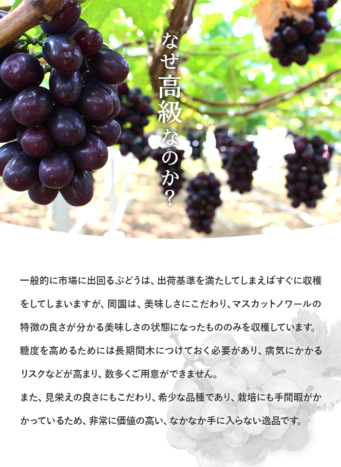| 商品内容 | 【希少種】高級ぶどう「マスカットノワール」2房 800g前後 |