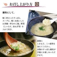 和風の味付(日本酒・醤油等)の袋入りスープ。長期保存ができて便利。雑炊、茶碗蒸しでどうぞ。