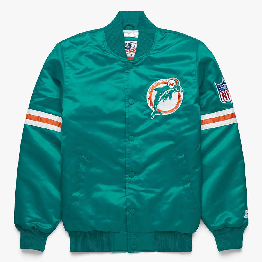 NFL ドルフィンズ スタジャン スターター x オマージュ バーシティ サテンジャケット アウター STARTER ティール 2212fsg