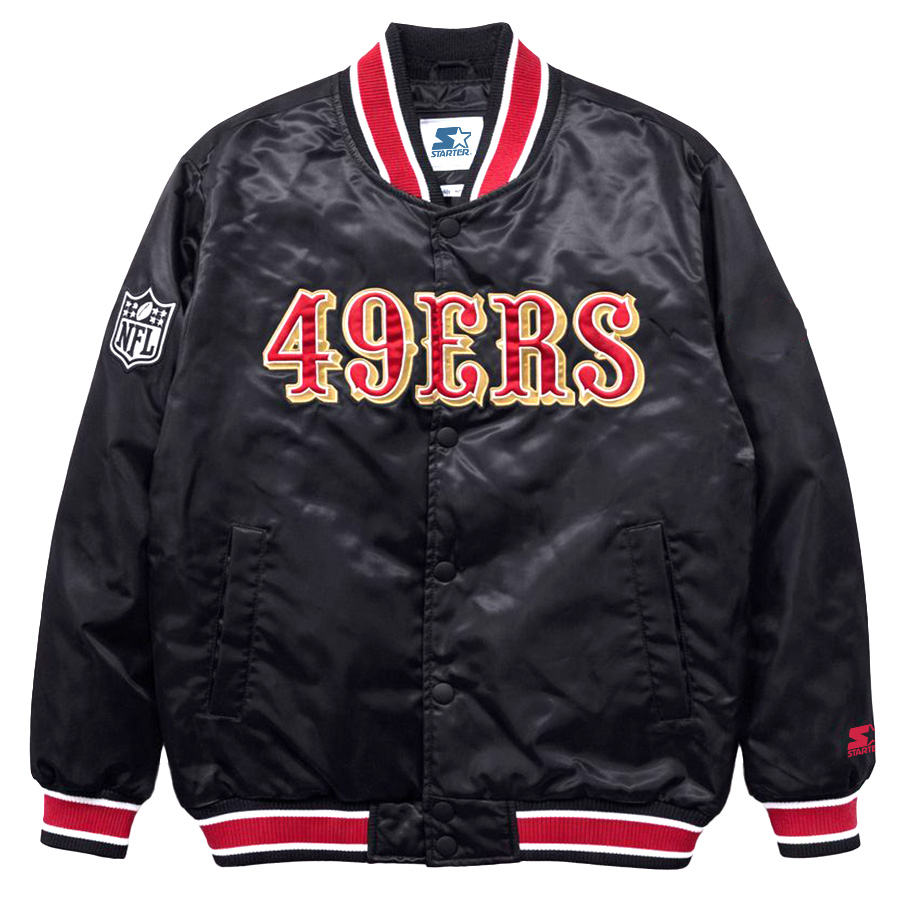 NFL 49ers ジャケット 【現地買付】サテン フルスナップ スタジャン バーシティー STARTER ブラック