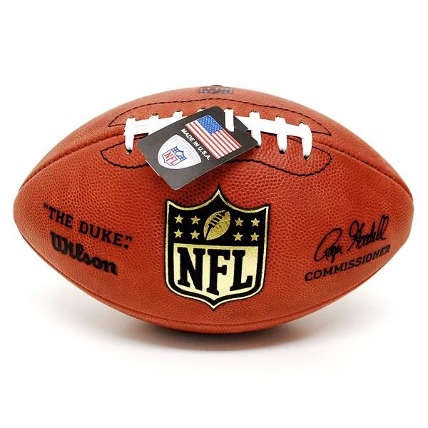 | 商品説明 | NFLの試合で実際に使用されている、サイズや素材全てが本物の公式球。 ベーシックな4枚パネル式、オフィシャルを示すNFLシールドロゴが輝きます。 NFLコミッショナーのロジャー・グッデル氏のサインが刻まれているのも特徴です。 メーカーはNCAAフットボールの公式球も扱うウィルソン社製です。 最高級のレザーを使用したその質感を是非ご堪能下さい。 |