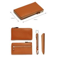 | 現金・カードの収納に特化したL字ファスナー長財布。 厚みはファスナーの幅と同じ15mmで、独自レイアウトによりものを入れても膨らみにくくなっています。カードポケットの下を突き抜けるようにすることで、本体の高さをぎりぎりまで低く設定しました。 壁側の小銭入れ部には小銭を外側からも内側からも取り出すことのできるダブルアクセス構造を採用。会計時に発生した小銭のおつりも、小銭ポケットをガバっと開き上からまとめて「ポイ」することで、よりスピーディに会計を済ませることができます。背面側のファスナーポケットにマチをつけることで、見やすく取り出しやすい設計。 中央のカード入れには、独自の構造の縦に入る10カードポケットを配置。2枚の革を縫い合わせ、切込みを入れ中に芯を入れただけのシンプルな構造にすることで、革の重なりを抑え薄く仕上げました。 試行錯誤の上、切込みの絶妙な角度と間隔により、カードを選びやすく、取り出しやすいように仕上げました。この薄くハリのあるカード入れが仕切りとなり、お札が折り曲がらずまっすぐに収まるようになっています。 カードをきれいに、取り出しやすく「整列」できることからフランス語で整列を意味するアリニエ(aligner)と命名しました。 |