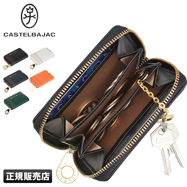 カステルバジャックの6色のイメージカラーを飾りステッチと手かがりステッチで表現した小物シリーズ。本体素材にはサフィアーノ調のエンボスを施した牛革を使用。アイロン加工で凸凹部分にナチュラルなツヤを出して質感を高めています。光沢のあるゴールドファスナーや金具、ネーム表現と裏地もゴールド色のサテン生地を使用してユニセックス感覚に仕上がっています。 |