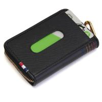 メインスペースは3室に分かれています。コインの種類を分けて収納すると取り出しやすく便利です。内部両サイドにはカードポケットが1つずつ装備。ホック留めで取り外し可能のキーチェーンが付属。