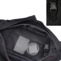 片側にクッション材が搭載されたバックにはファスナーポケットが配置。スマートフォンを中に入れても安心です。