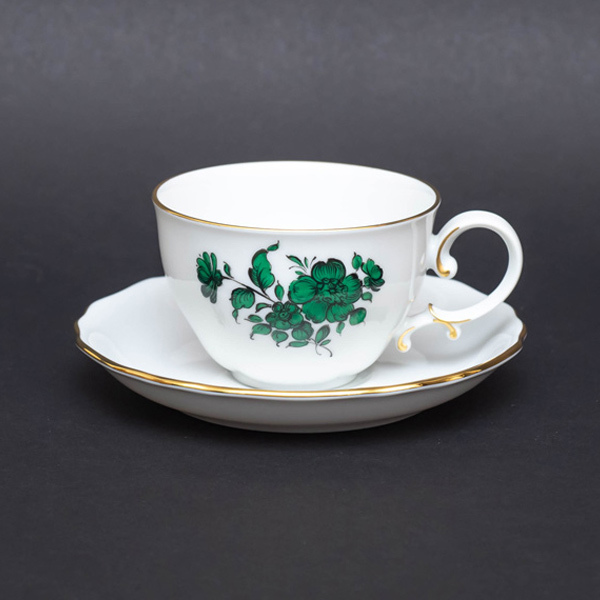 狩猟のシンボルであるモミの木色だけで彩色されたシンプルなデザインのシリーズ。アウガルテン宮殿完成を記念して女王マリアテレジアに贈られたことがシリーズ名の由来となっています。モチーフは全6パターンあり、こちらは野バラ(ドッグローズ)が描かれています。(5098/C)