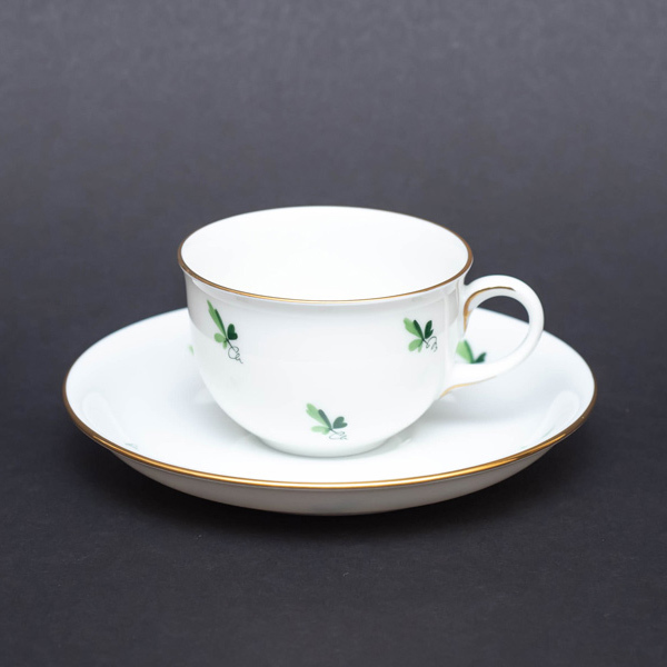 オーストリアの名窯、アウガルテンのスキャタードグレープリーブスのデミタスカップ&ソーサー。