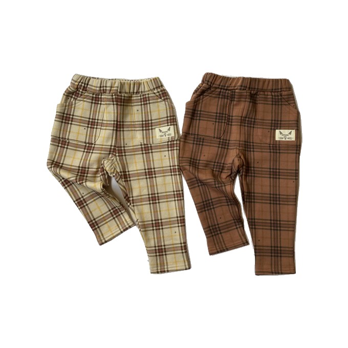 【Croissance Bebe/くろわっさんすべべ/ベビー服/男の子ベビー服/女の子ベビー服/保育園/託児所/保育所/着替え/チェック柄/秋冬/可愛い/ボトムス/ズボン/長ズボン/2歳/3歳/裏起毛/動物/肉球】