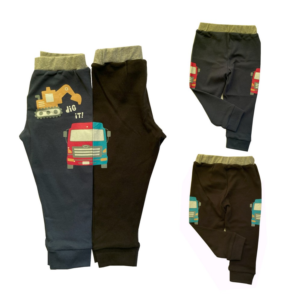 【ベビー服/男の子ベビー服/保育園/託児所/保育所/入園準備/着替え/乗り物シリーズ/はたらく乗り物/働く車/知育/ボトムス/ズボン/長ズボン/1歳/2歳/3歳/工事車両/ダンプ/トラック/ショベルカー/プリント/無地/くろわっさんすべべ】