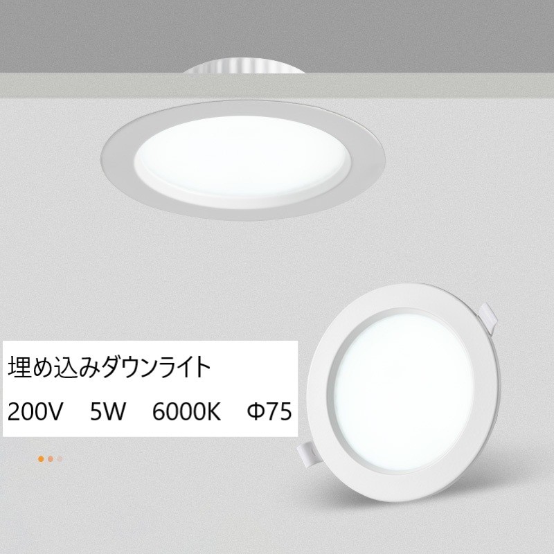 薄型LEDダウンライト 220V 75Φ 6w 6500K 2個set