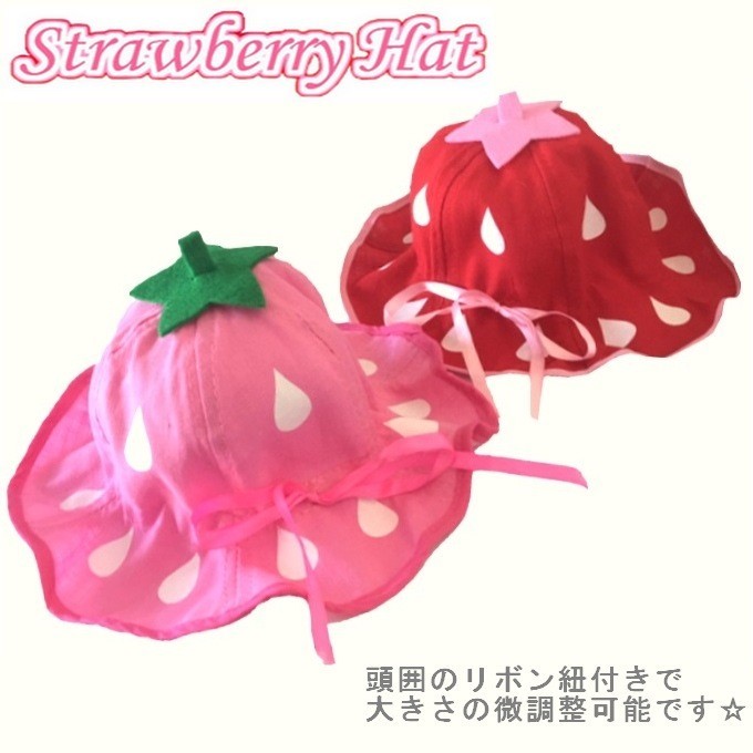 | 可愛くて美味しそう!! いちごのヘタつき、とってもキュートな帽子です☆ つばの自然なひだが赤ちゃんの小さな頭にちょこんとのってる姿はほほえましい可愛さですね。 この帽子、すごいのは、可愛さだけじゃないんです… 機能性も抜群なんです! つば広で、紫外線からしっかりガード! 汗をかいたらヘタをつるして干せるし、あご紐がついてるから落とす心配もなし!! さらに、頭囲サイズの微調整が出来るリボン紐付き! これはもう一人一つはほしいアイテムです 高級ブランドにありそうな可愛い帽子はプレゼントにもおすすめです! |