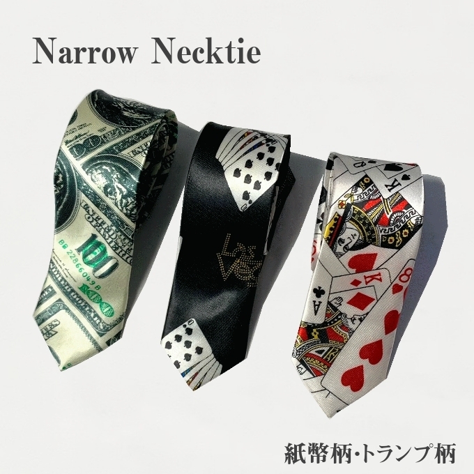 | コスプレや舞台衣装におすすめ! トランプ柄と紙幣柄の細いネクタイです イベントにもピッタリですね |