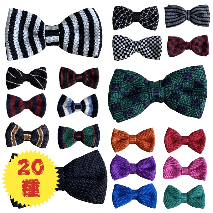 蝶ネクタイ 市松柄 ギンガムチェック ストライプ ニット ニットネクタイ ニットタイ カジュアル ボーダー 男女兼用 舞台 衣装 発表会 イベント mcnb-300