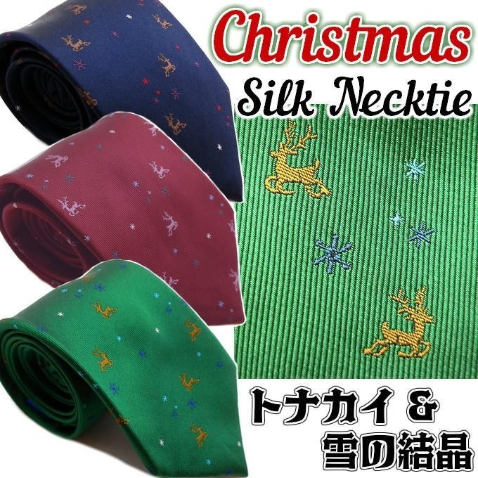 ネクタイ シルク ジャガード クリスマス 柄 トナカイ 結晶 プレゼント 彼氏 夫 贈り物 イベント xm-28