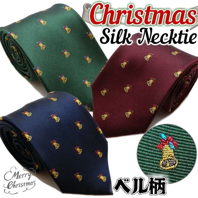 ネクタイ クリスマス シルク ジャガード 柄 ベル 鈴 プレゼント 彼氏 夫 贈り物 イベント xm-31