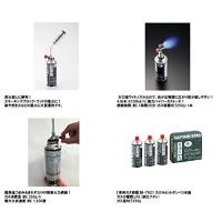 材質:火口/ステンレス鋼、導管/アルミニウム、器具栓/アルミダイカスト(亜鉛めっき)、アダプター/ナイロン、器具栓つまみ/ABS樹脂、ガスの種類/LPG(液化ブタン)、ガスの量/NET250g