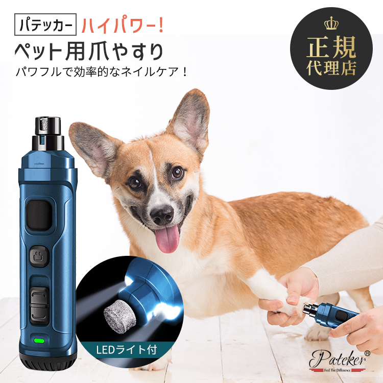 爪やすり ペット用 爪切り Pateker 犬 つめきり 電動 超高輝度 LED ライトx2 パワフル 2速 充電式 犬用 猫用 グラインダー ネイルケア 爪切り 爆買