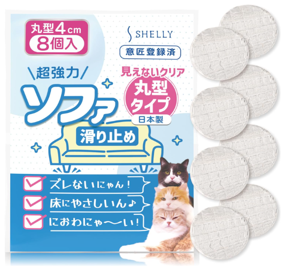 Shelly ソファ 滑り止め 見えない 超強力 ソファー 滑り止め 丸型 直径 4センチ クリア 8個ソファのズレや床のキズ・騒音など、ソファの悩みを解決します小さいお子様がいると飛び跳ねたり飛び込んだりして床が傷だらけになったことはありませんか?集合住宅では騒音が迷惑がられてお困りではありませんか?そのようなお悩みを解決するため開発されたのがシェリーの「見えない超強力滑り止めシリーズ」ですソファのズレや床のキズ・騒音など、ソファの悩みを解決します