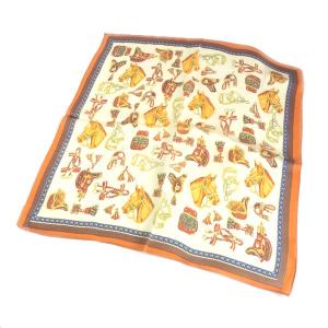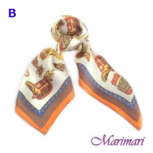 シルク100%スカーフ 馬具用品 ハーネス類 ネッカチーフサイズ約50cm正方形 鞍 鐙