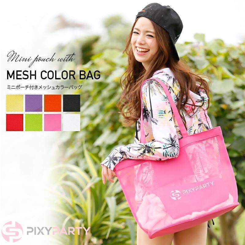 商品名:PixyParty ミニポーチ付きメッシュカラーバッグ