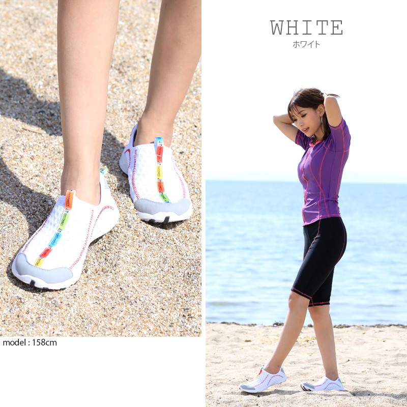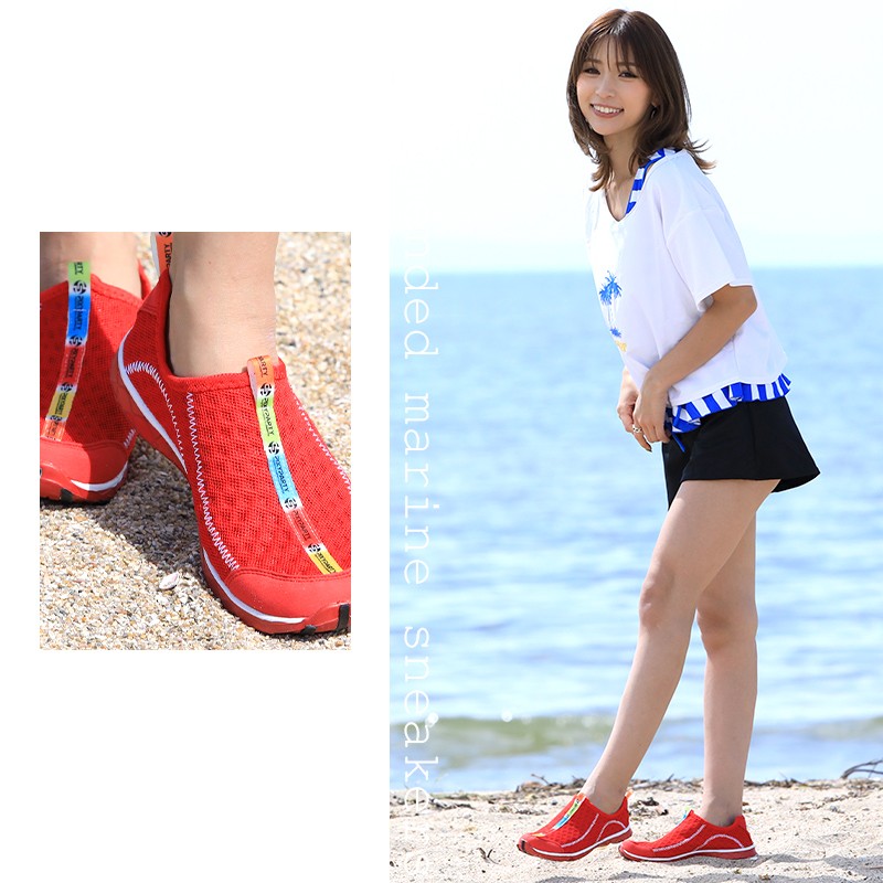 スポーツシューズをイメージしたマリンシューズ。夏らしいカラーリングもアクセント
