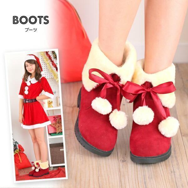 ブーツ クリスマス コスプレ サンタ コスチューム 防寒 イベント エコファー フェイクファー かわいい レディース