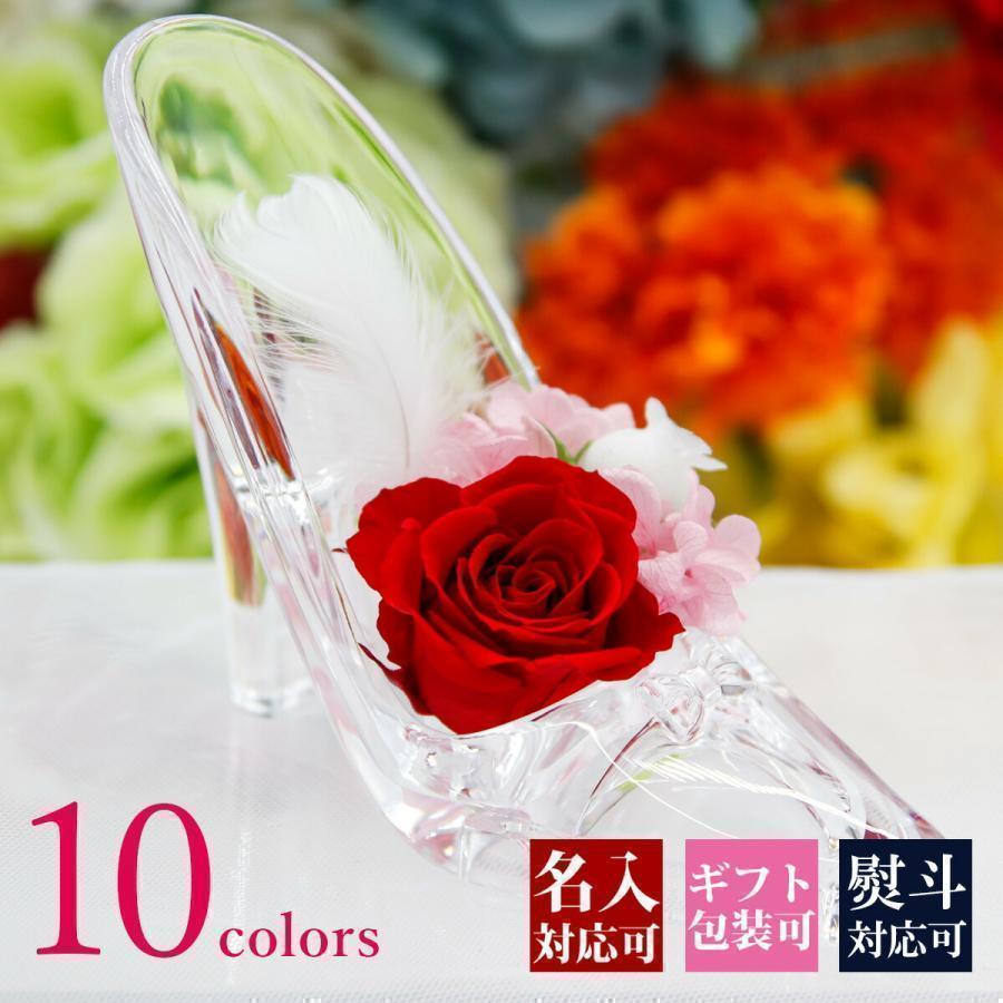 花 プレゼント おしゃれ 名入れ ガラスの靴 プリザーブドフラワー ギフト 誕生日 一輪 名前入り メッセージ入り ケース入り バラ 結婚祝い プロポーズ 母の日
