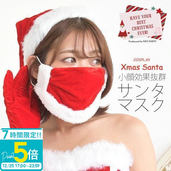 マスク 可愛い サンタクロース専用マスク 小顔効果抜群ふんわりサンタマスク サンタ用マスク かわいい レディース PixyParty ハロウィン コスプレ